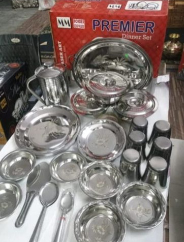 Brand sk handicrafts stainless steel dinner set of 52 304 carrot manufacturer moradabad Uttar Pradesh pin code 244001